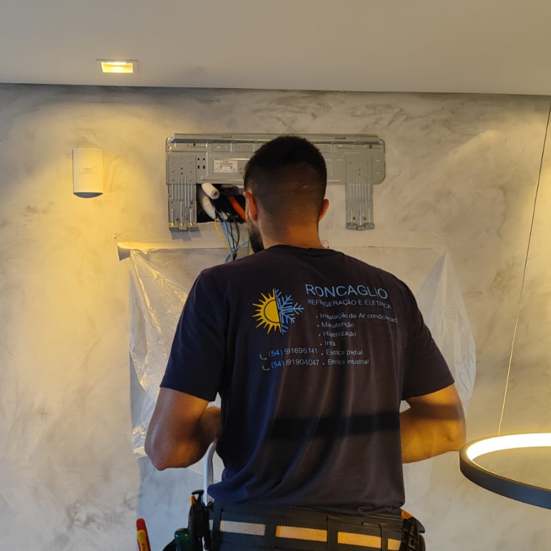 Hoje, nossa atuação é 100% focada em climatização. Mantemos uma empresa parceira com o mesmo nome para atender demandas específicas de elétrica predial, mas a Roncaglio Ar Condicionado é, essencialmente, uma empresa especializada em climatização residencial e comercial.